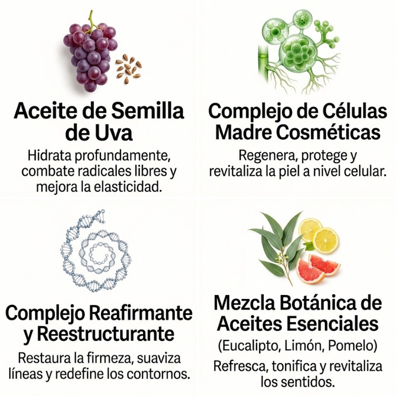 💪 Flacidez: estimula el colágeno natural, tensa en profundidad y devuelve firmeza.